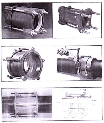 - استفاده از کلمپهای پیچی تمام دورگیر فقط در تعمیراتی توصیه میشود که در آنها لوله قادر به حفظ یکپارچگی خود میباشد